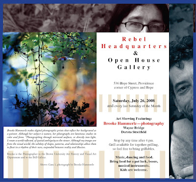 Photography by our wonderful guest artist—Brooke Hammerle (www.brookehammerle.com), and art showing by Wayne Bridge and Dorota Streitfeld. Music, potluck (including grilling,) dancing, chats, laughs.